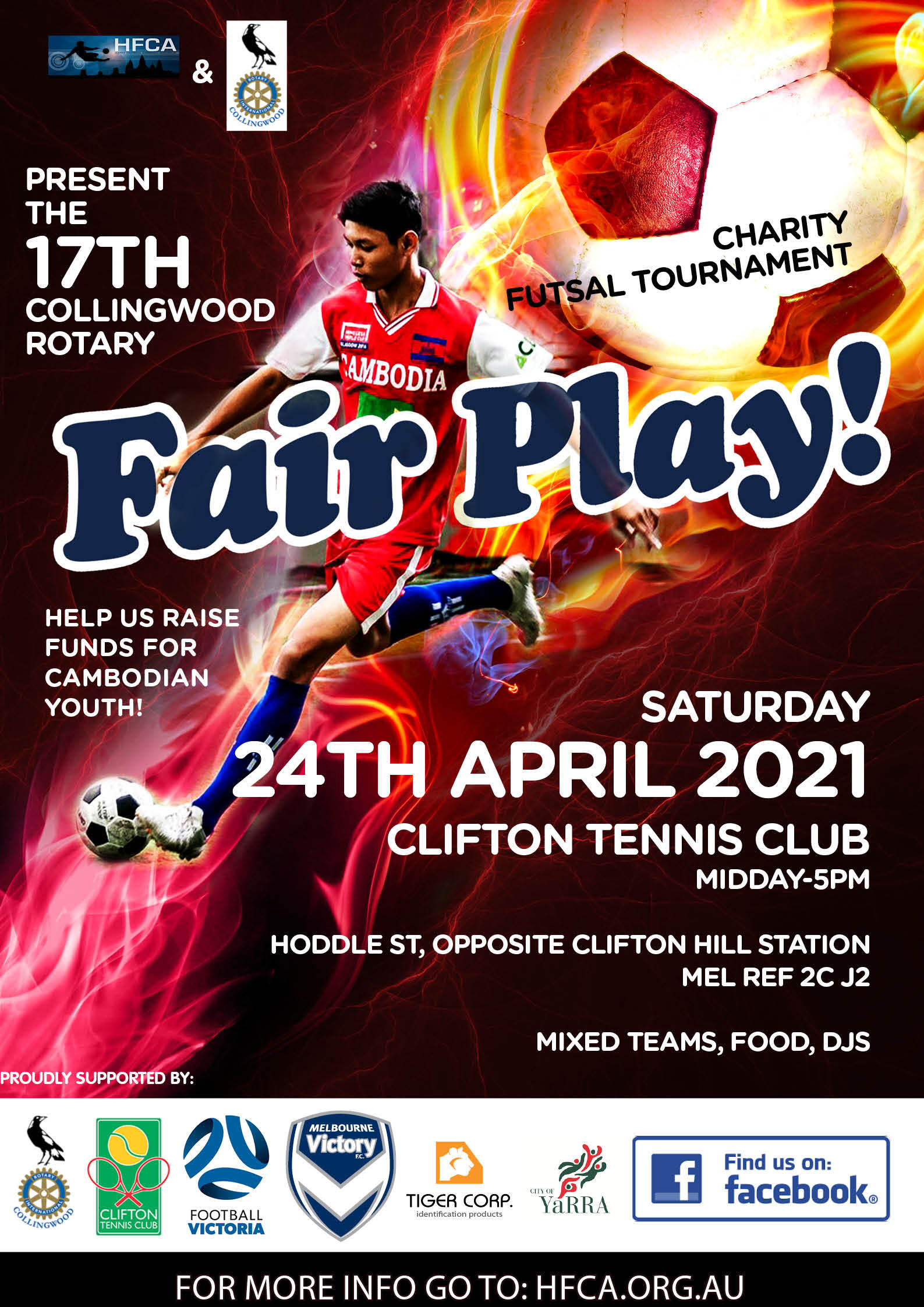 Fair Play is one of longest running community events in Melbourne having first started in March 2007. With sixteen Fair Plays under our belt we are delighted to go again this April and welcome 16 teams for our annual 5 a side fundraising football tournament.